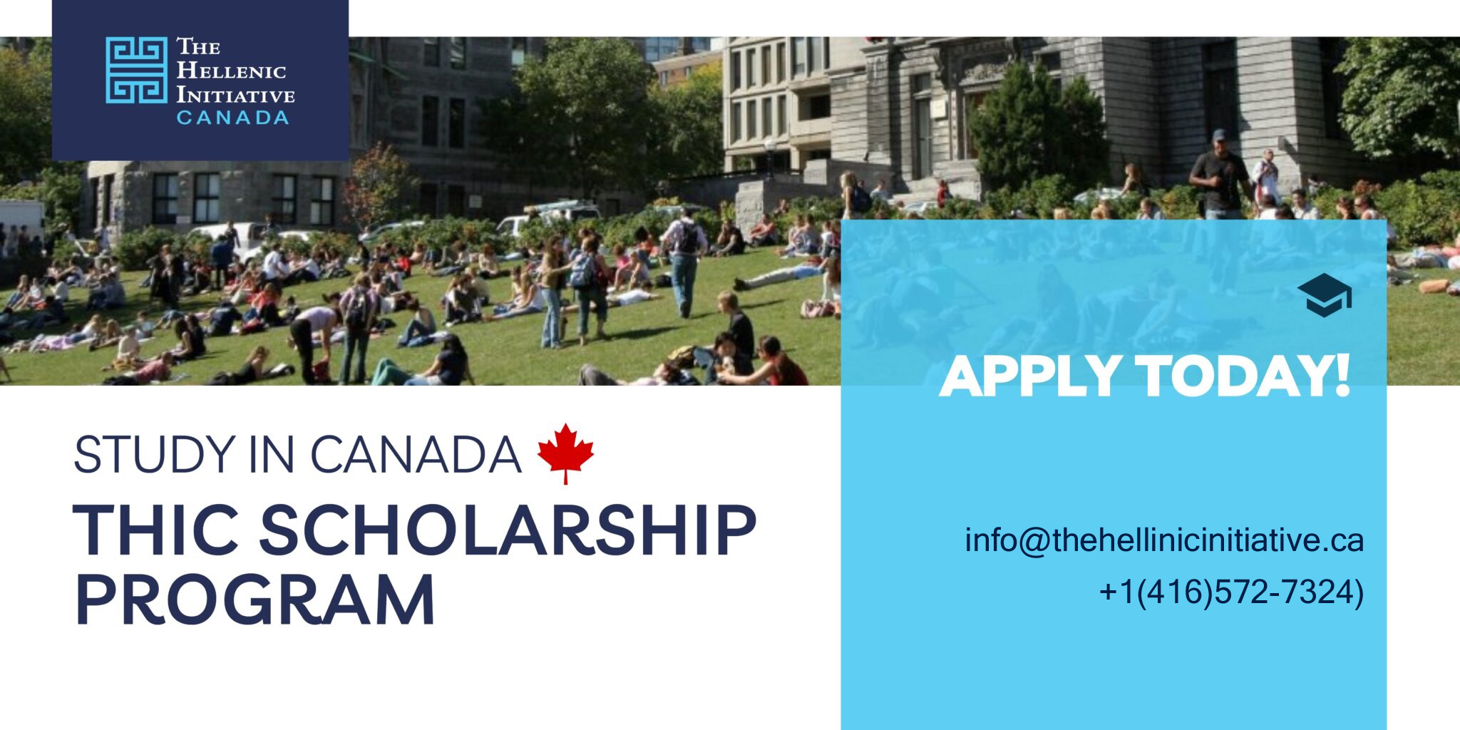 The Hellenic Initiative Canada (THI Canada) is pleased to continue its scholarship program, which provides financial assistance to Greek students residing in Greece to pursue their studies in Canada.